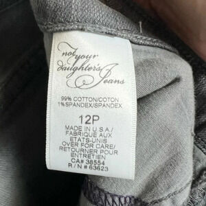 NYDJ Not Your Daughters Jeans Gray Wash Flare Jeans Embellished Back Pockets With Extra Rhinestones Button Zip Closure 5 Pockets Stretch