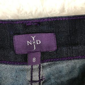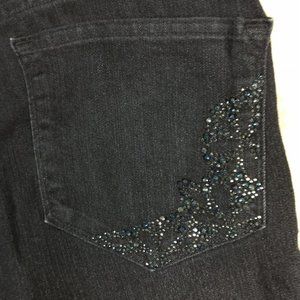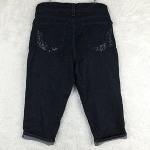 NYDJ Womens Jeans Crop Blue Denim Indigo Dark Wash Jeweled Stretch Cuffed 8