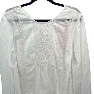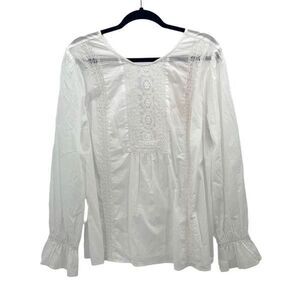 NYDJ Womens Lace Trim Ruffle Long Sleeve Victoria Blouse Top White Large NWT