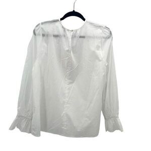 NYDJ Womens Lace Trim Ruffle Long Sleeve Victoria Blouse Top Optic White Large NWT