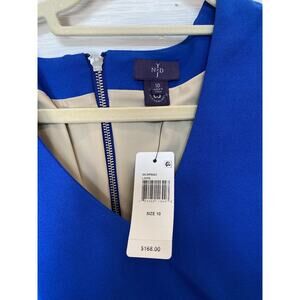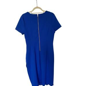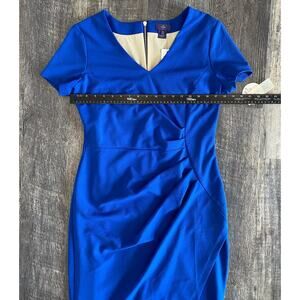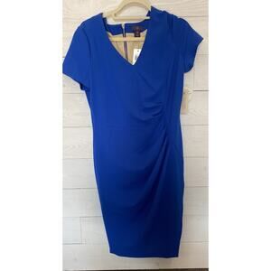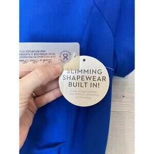 NYDJ Women's Royal Blue Dress Size 10 Slimming Shapewear Built In. NEW with tags MSRP $168. Office, Professional, Career, Work, Wedding, Event, Party.. Dress is lined. Has zipper closure in the upper middle back. Faux wrap/ Slit front.