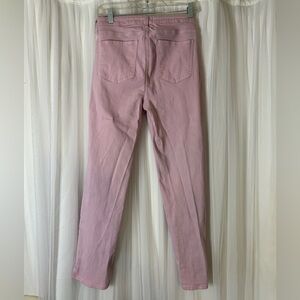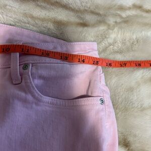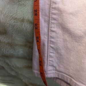 Chic straight leg jeans by NYDJ. Soft pink hue. Ideal for casual wear. Width and inseam measurements in pictures.