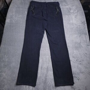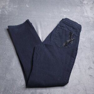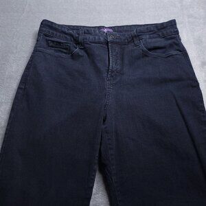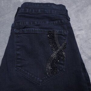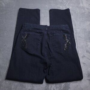 NYDJ Womens Straight Leg Jeans 12 Mid Rise Black Rhinestone Pockets Slimming