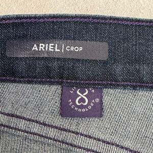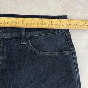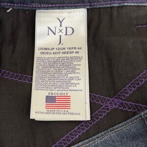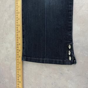 Stylish NYDJ straight leg jeans. Dark blue color. Classic design with button details.