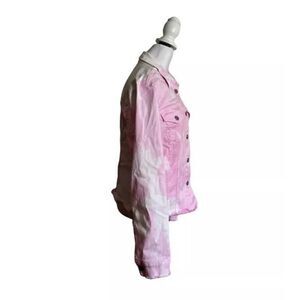 NYDJ brand womens pink and white acid washed style denim jacket. US size Medium, please verify your measurements below.