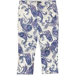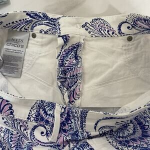 NYDJ for Chicos SLIM CROP Jeans Size 12 White Purple Paisley Lift Tuck Slimming