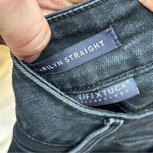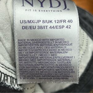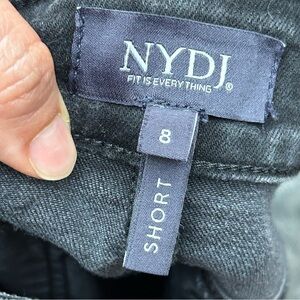 These NYDJ jeans feature a sleek black color and a timeless straight leg cut, offering a versatile and sophisticated look. Crafted from high-quality denim, they provide a comfortable fit and a polished appearance for any occasion.