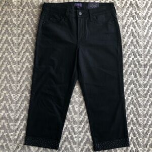 NYDJ rhinestone cuffed crop black pant in size 6