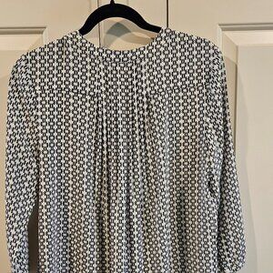 NYDJ women's 3/4 sleeve blouse. SZ M. Black/grey print. PTP: 23 in. L: 27 in. Great piece for the office.