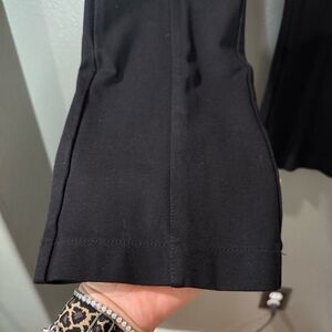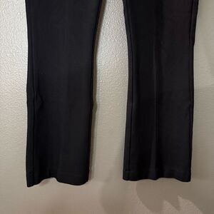 These NYDJ black boot cut pants feature a classic flare style that adds a touch of elegance to any outfit. Crafted from a high-quality fabric, they offer a sleek and sophisticated look suitable for professional settings. The deep black color ensures versatility, making them a staple piece in any wardrobe.