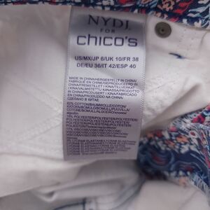 NYDJ For Chicos Floral Paisley Multicolor Skinny Ankle Liftxtuck Tech Jeans 6