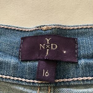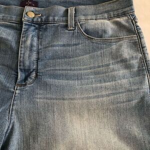 Very nice Jean shorts in a classic style with a good amount of stretch for comfort. A bit broken in, but still in good condition.