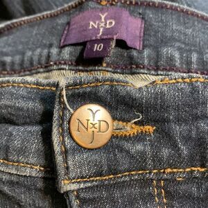 NYDJ Not Your Daughters Jeans Straight Leg High Waist Mom Jeans 10. Five pocket. Some distressed areas. See photos. Stretch. Great preowned condition. Approximate measurements rise 10 inches in same 31 inches waist laying flat 32 inches