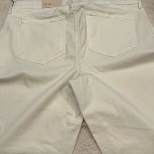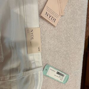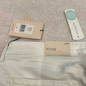 Chic NYDJ slim jeans in crisp white. Ideal for versatile styling.