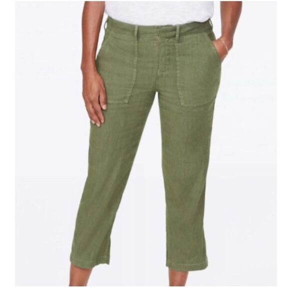 NYDJ Utility Pants In Stretch Linen olive green cropped size 16W
