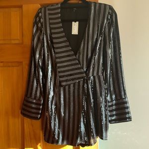 “Dark grey sequin embellished tux playsuit”