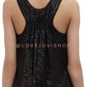 NYE Glam | Diane Von Furtenberg Black Sequin Beaded Top Racer Back Layered Mesh