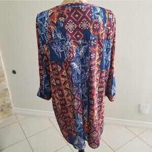 NYGARD XL blue red green white and black in great shape tunic 3/4 sleeves