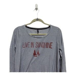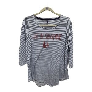 NYJD 3/4 Sleeve Boat Live in Sunshine Striped Oversized Shirt Blue White Size M