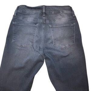 These mid rise ankle length denim leggings have a six pocket design. They are made of a stretchy denim for all day comfort. These leggings are designed to lift the rear and flatten the tummy. In very good used condition. The care/content tag is missing.