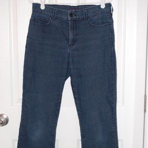 NYJD Jeans With Black Sequined Back Pockets Size 8 15" Waist, 10" Rise, 37 1/2 " Waist to Hem, 8" Leg Opening Good Preowned Condition.