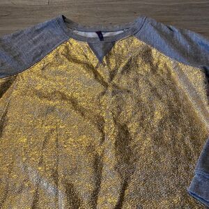 NYJD gold flecked front long sleeve pullover women's grey sweater size medium