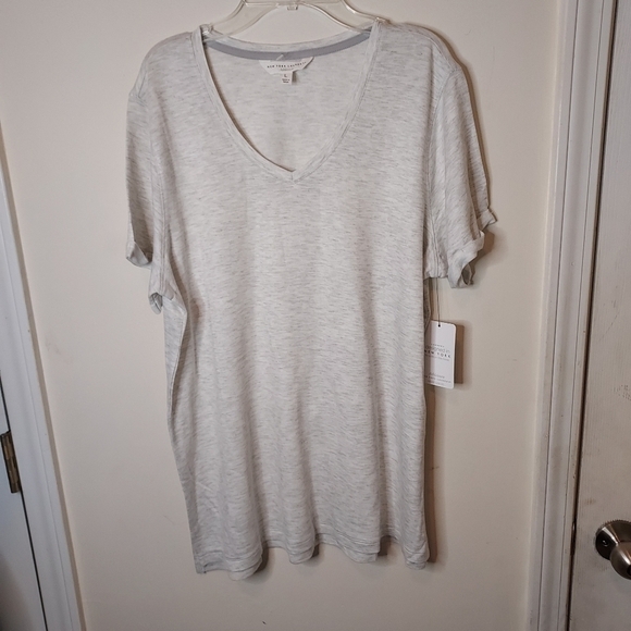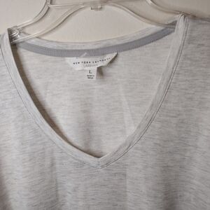 v-neckline short sleeve top with side slits 65% Rayon 32% Polyester 3% Spandex pit to pit 22" length 28"