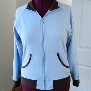 N.Y.L. New York Laundry Blue Bash Full Zip Sweatshirt XL retro jacket brown trim