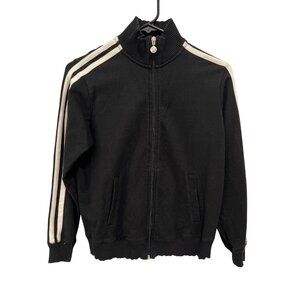 This N.Y.L. track jacket in petite medium features a sporty look with white striped sleeves. Crafted from 100% cotton, it is lightweight and comfortable for casual use.