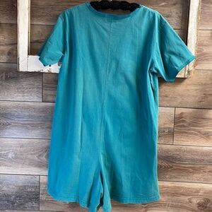 NYL SPORT New York Ladies Cotton Romper One Piece Shorts Button Front Size Large Teal