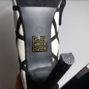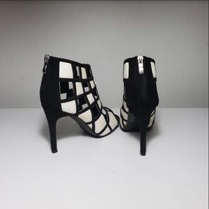 Brand NEW, N.Y.L.A. Black and White Checkered Sexy Bootie, open toe, heels. 4" high.