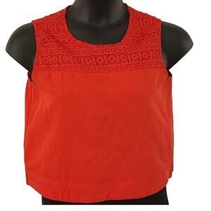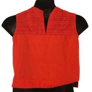 NYLA Lace Embellished Neckline Sleeveless Blouse - Size Large, Red