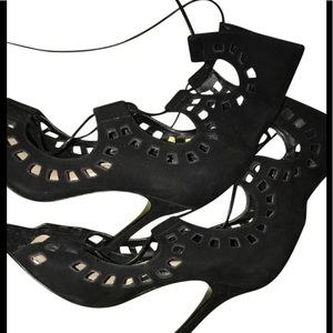 Matli Gladiator Black SUEDE Cut-Out Stiletto Heels