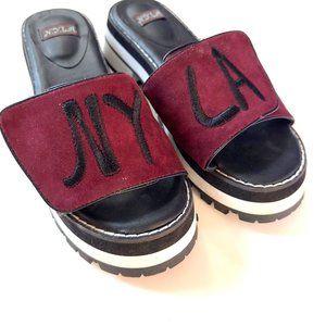 Step into the Y2K era with these N.Y.L.A. Sunlily sandals. These burgundy mules are size 7, featuring a chunky platform heel for a bold, edgy look.