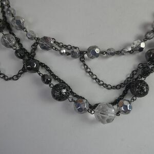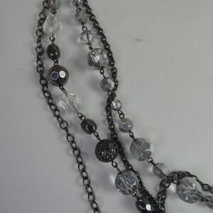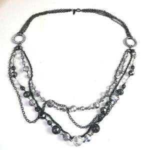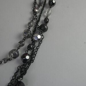 Gorgeous plus size friendly necklace with multiple strands, beads, rhinestones, dark metal, and great movement.