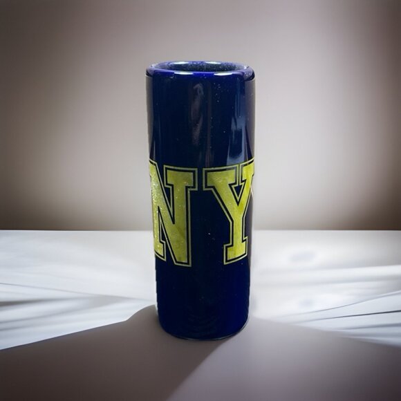 NYPD New York Police Department Cobalt Blue W/ Gold Spell Out Shot Glass 4.5” T