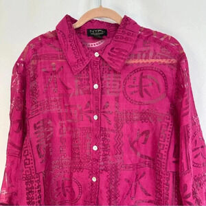 N.Y.P.L Collection Top Blouse Women's Plus Size 3X Top Sheer Purple 3/4 Sleeves