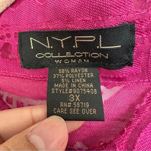 N.Y.P.L Collection Top Blouse Women's Plus Size 3X Top Sheer Purple 3/4 Sleeves. Lightweight.’In good preowned condition.