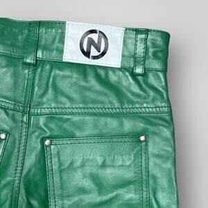 NYRVA Green Genuine Leather Flare Pants Size 28 High Waist Retro Y2K- L34