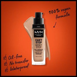 Lightweight, waterproof and highly pigmented, NYX Professional Makeup Can't Stop Won't Stop Full Coverage Foundation is a long wearing waterproof liquid foundation that comes in a wide range of flattering tones that don’t transfer