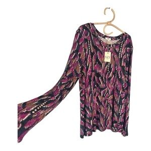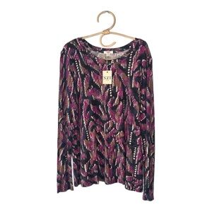 NZT Sweet Dreams Long Sleeve Printed Vines Popover Top Nic + Zoe Pink Multi