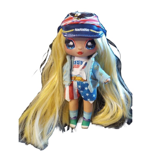 Introducing the Na Na Na Surprise Erika Featherton Glam Series 2 Patriotic 7.5" Fashion Doll, a must-have item for collectors and toy enthusiasts. This doll is a beautiful representation of a girl doll with blonde straight hair, blue eyes, and light complexion. It comes with a set that includes the doll itself, and is part of the Na Na Na Surprise Glam Series product line, manufactured by MGA Entertainment in China.