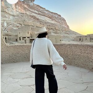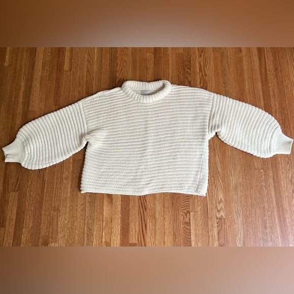 Pima cotton balloon sleeve sweater by Na Nin, slightly cropped with dropped shoulders. O/S (see measurements) in the ivory (cream) color. Excellent used condition, I just don’t reach for it enough!