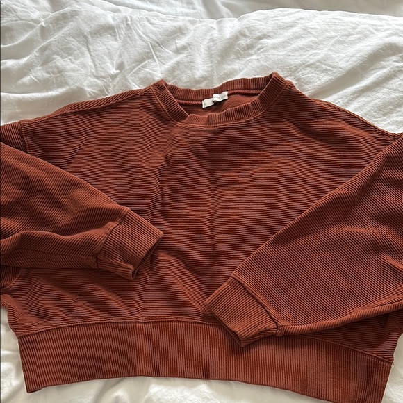 Cozy ribbed knit sweatshirt in a rich rust color. Perfect for casual wear. Good used condition.