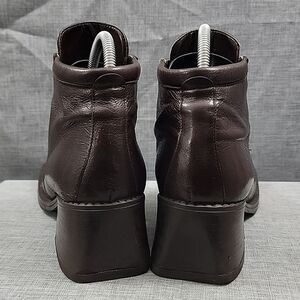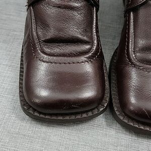 NaNa VTG Brown Leather Granny Ankle Boots Block Heel lace-up SZ 39