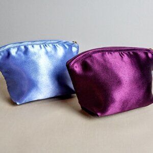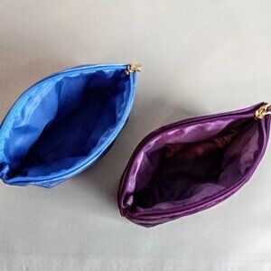Two NaRaYa zip-top cosmetic bags, one in periwinkle blue/lavender and the other in burgundy wine.