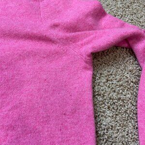 Naadam 100% cashmere sweater in a rich pink color. Women's size M, fits like a small or fitted medium (pictured on a size XS-S). Very classic, preppy and cozy! Very minor pilling at armpits as shown in photos 5 and 6, can easily be shaven off. In great condition!