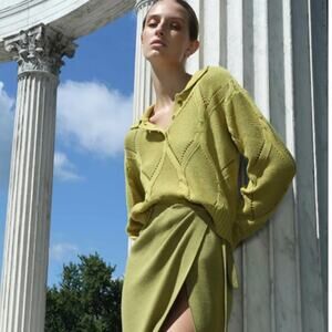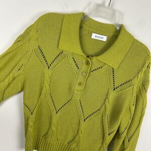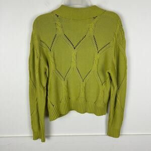 Naadam Cashmere Blend Open Stitch Agave Green Long Sleeve Cable Knit Polo M