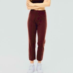 Naadam Cashmere Cropped Pants High Waisted Straight Leg Maroon Burgundy Size XXS