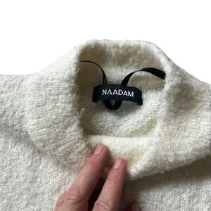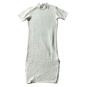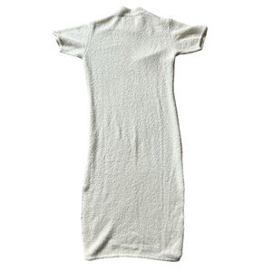 Naadam Luxe Boucle Knit sweater Dress winter white midi size small mock neck